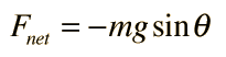 A point mass hanging on a massless string is an idealized example of a simple pendulum. When displaced from its equilibrium point, the restoring force which brings it back to the center is given by: