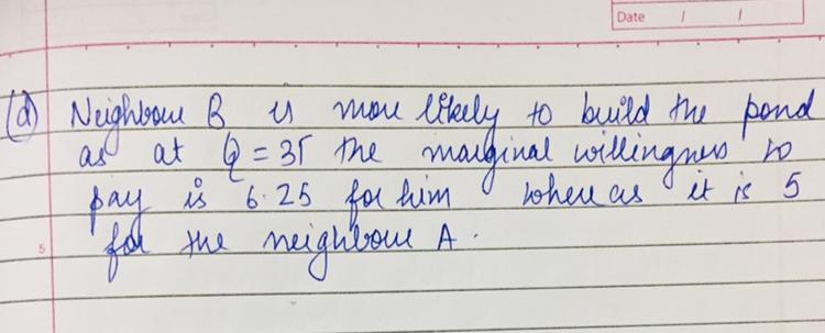 d) Which neighbor is more likely to build the pond? Explain your answer.