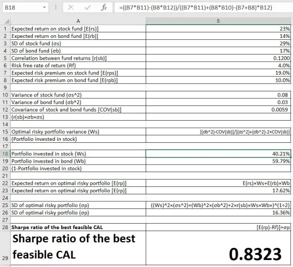 What is the Sharpe ratio of the best feasible CAL? (Do not round intermediate calculations. Enter your answers as decimals rounded to 4 places.)
