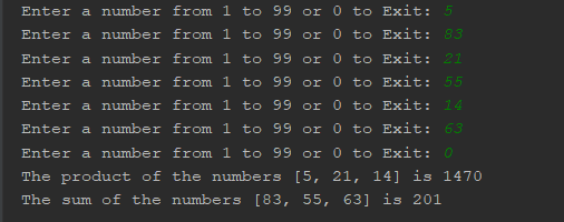 Enter a number from 1 to 99 or 0 to Exit: 0