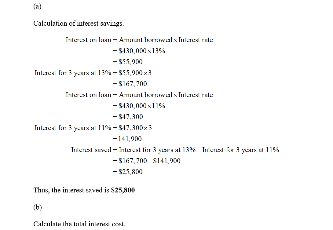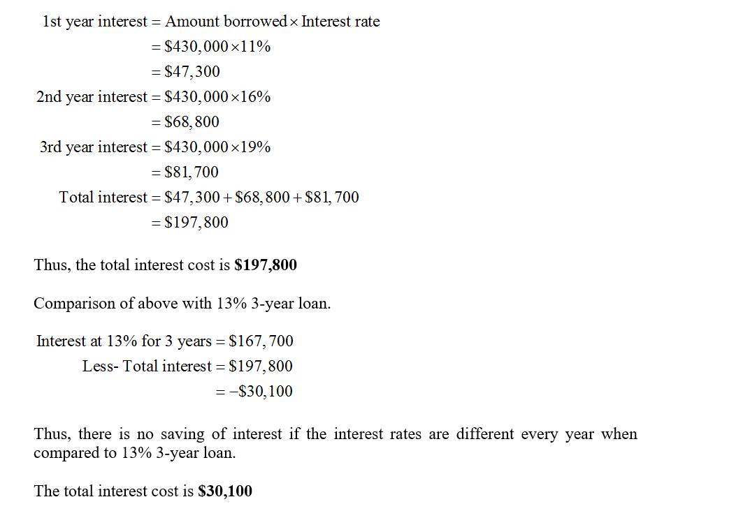 can borrow $430,000 for three years at 13 percent annual interest