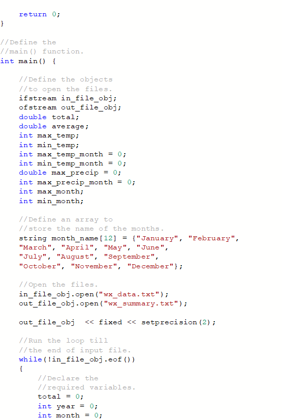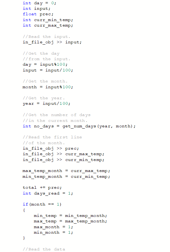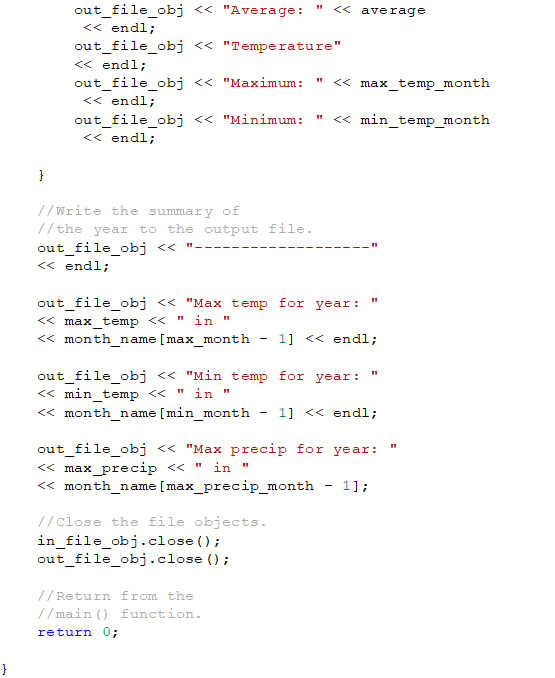 2. The program must read from file each daily weather observation and write a summary by month and year to a file named wx_summary.txt.
