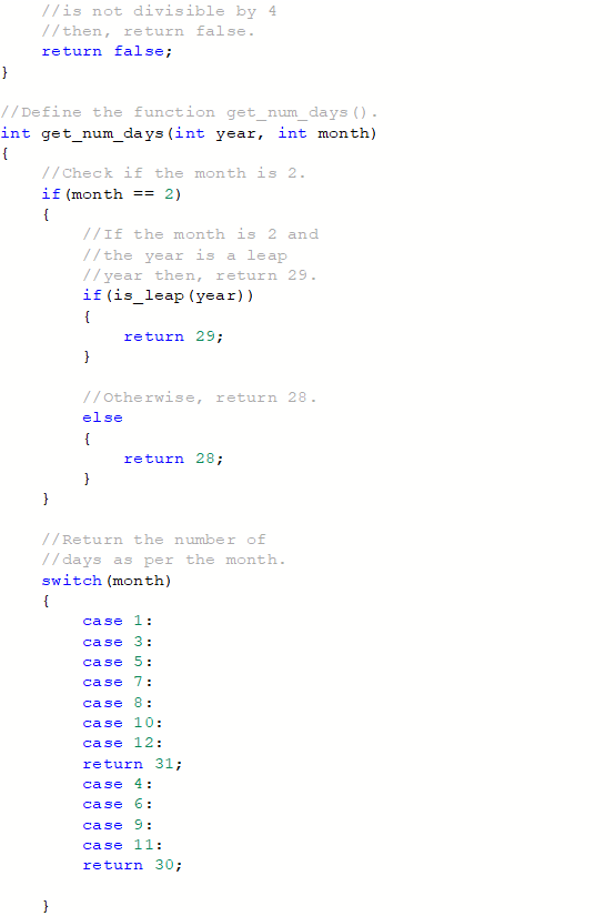 int no_days = get_num_days(year, month);