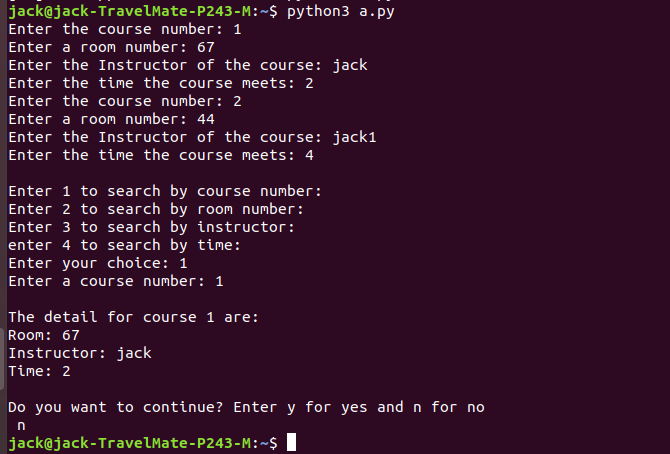 print('\nThis course number is not on schedule')