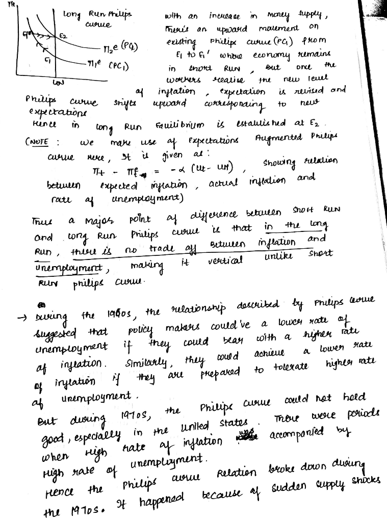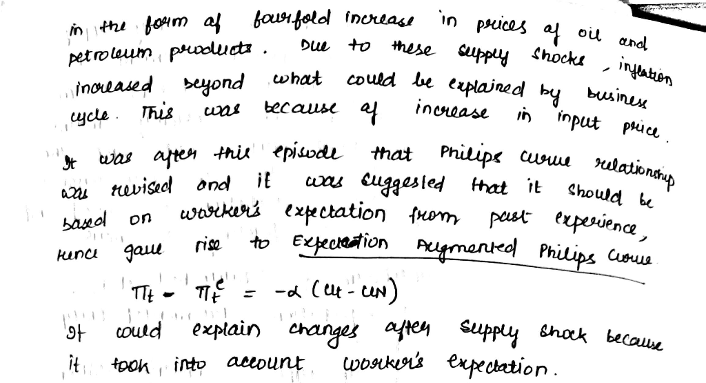 Initially , Policy makers believed that as per the Philips Curve relationship, a high inflation will be accompanied by low unemployment and vice- versa, But in the seventies, this relationship established by Philips Curve broke down because of the sudden supply shocks. High unemployment was accompanied by high inflation because of increase in the input prices (oil).