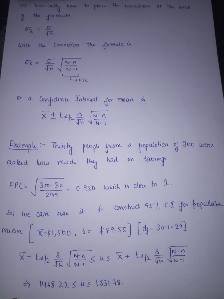 Remember, if we have a large, but finite population and we are taking a small sample of it, we need to use the FPC.