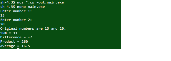 Console.WriteLine("Product = "+multiply);