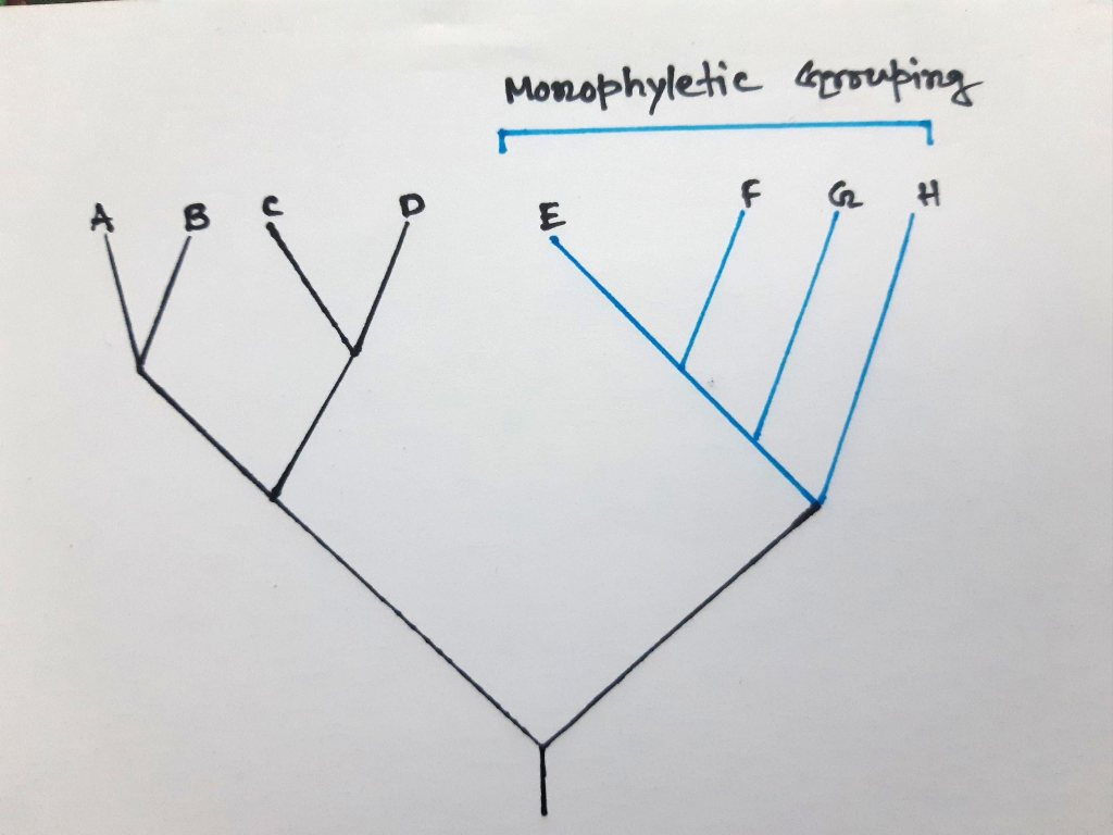 phylogeny of eight species (A through H),A Monophyletic group
