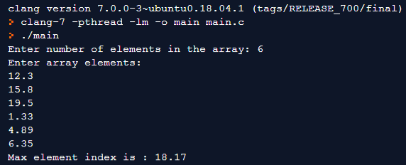 printf("Max element index is : %.2lf\n",difference); // print max index