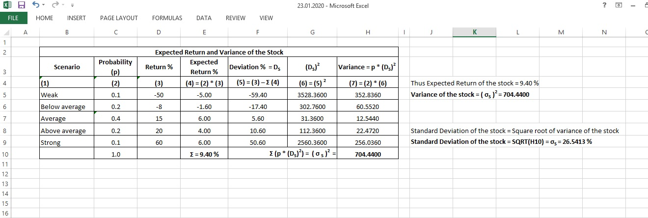 The stock's standard deviation = 26.5413 %