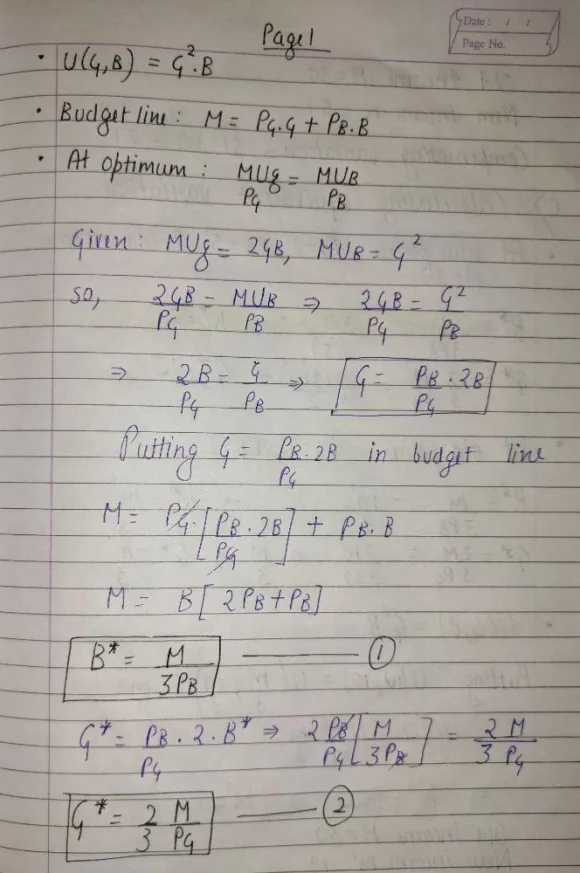 • Original budget line is AB with Equilibrium E and Indifference curve IC1. The optimal Bundle is (10,10)