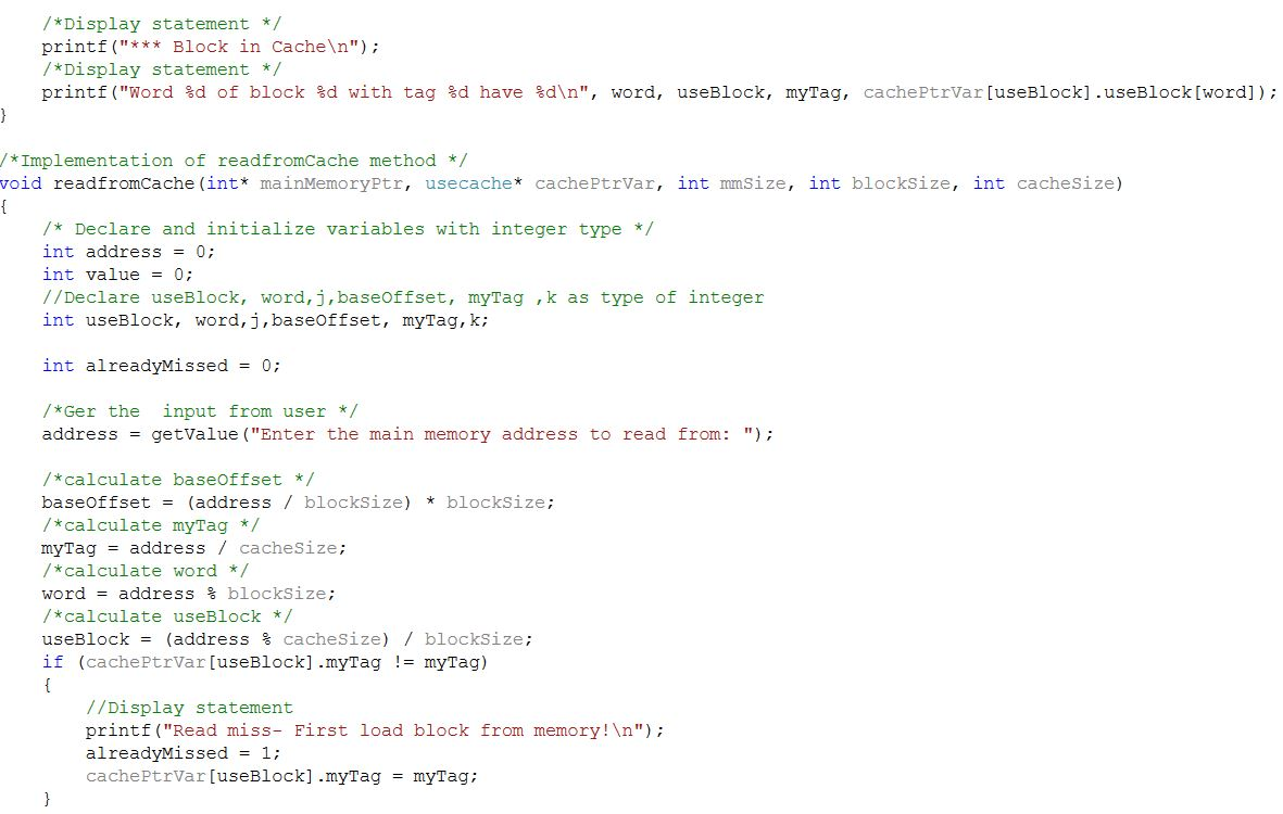 void readfromCache(int* mainMemoryPtr, usecache* cachePtrVar, int mmSize, int blockSize, int cacheSize)