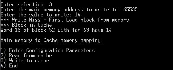*** Write Miss - First Load Block from Memory (followed on the next line by the Content Message above)
