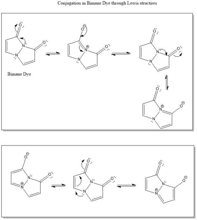 examples of the two dyes given with buly phenyl rings helping in