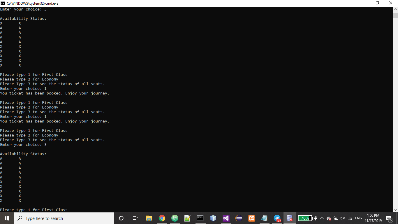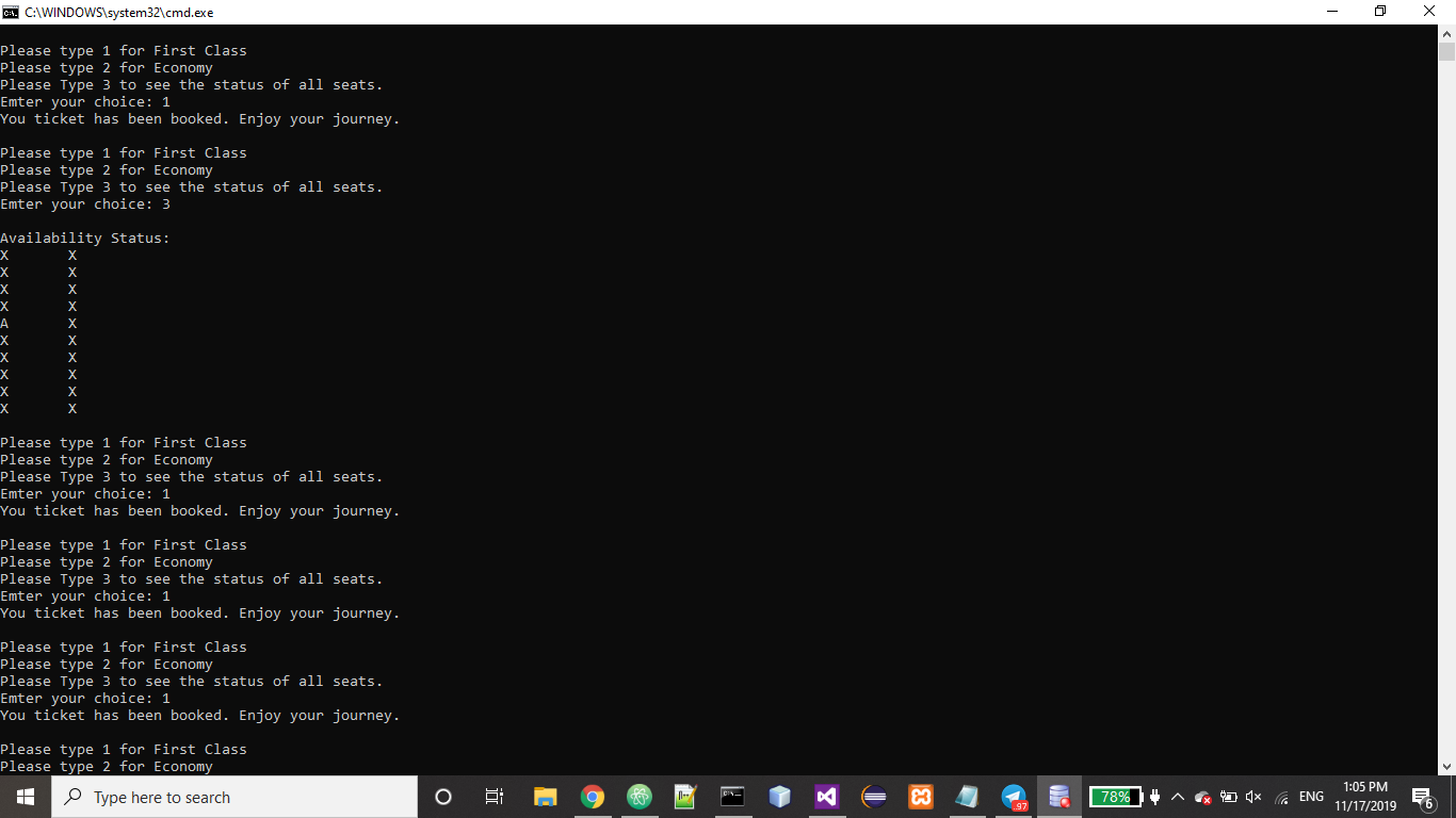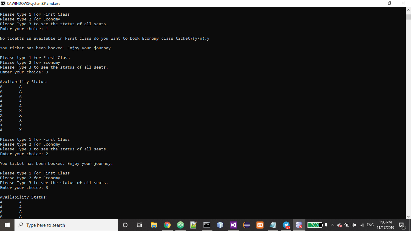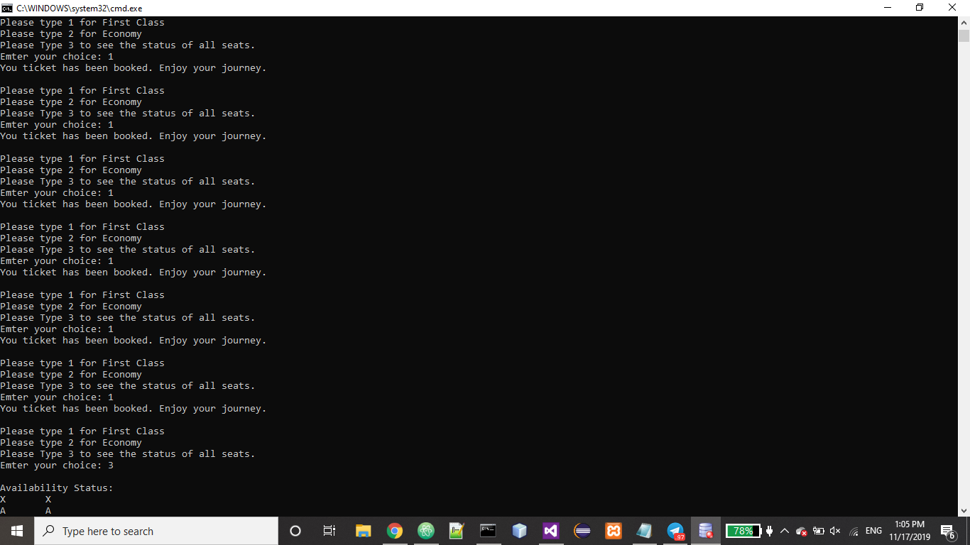 user types 1, your application should assign a seat in the