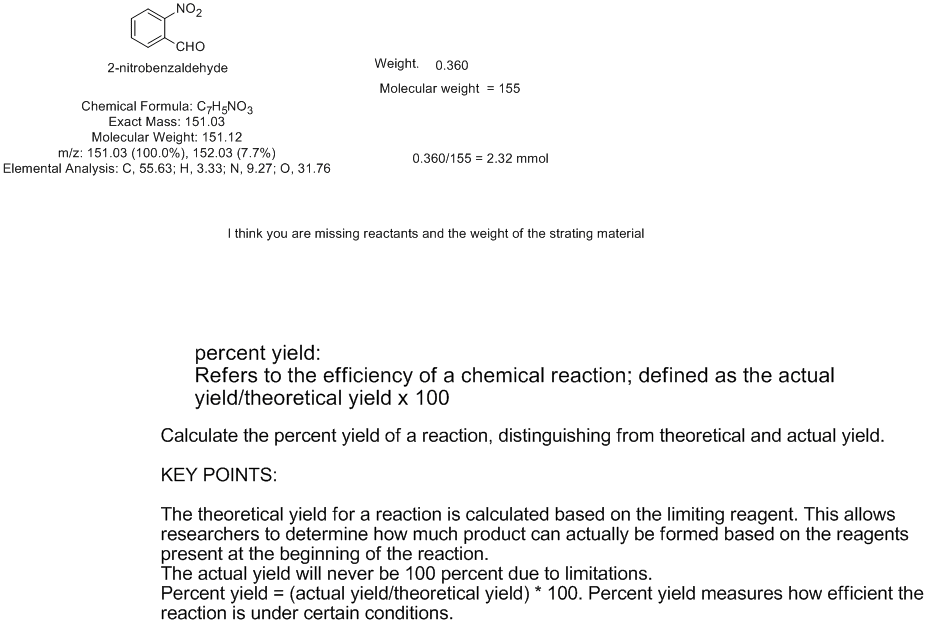 to react?Based on your theoretical yield, what is the percent yield