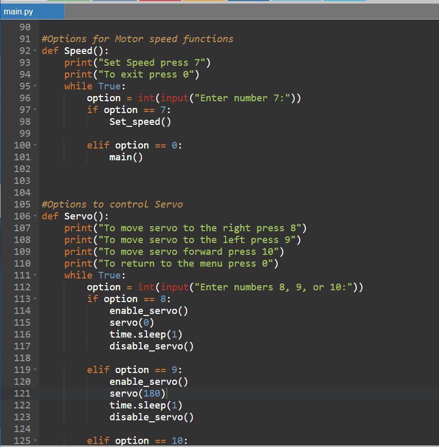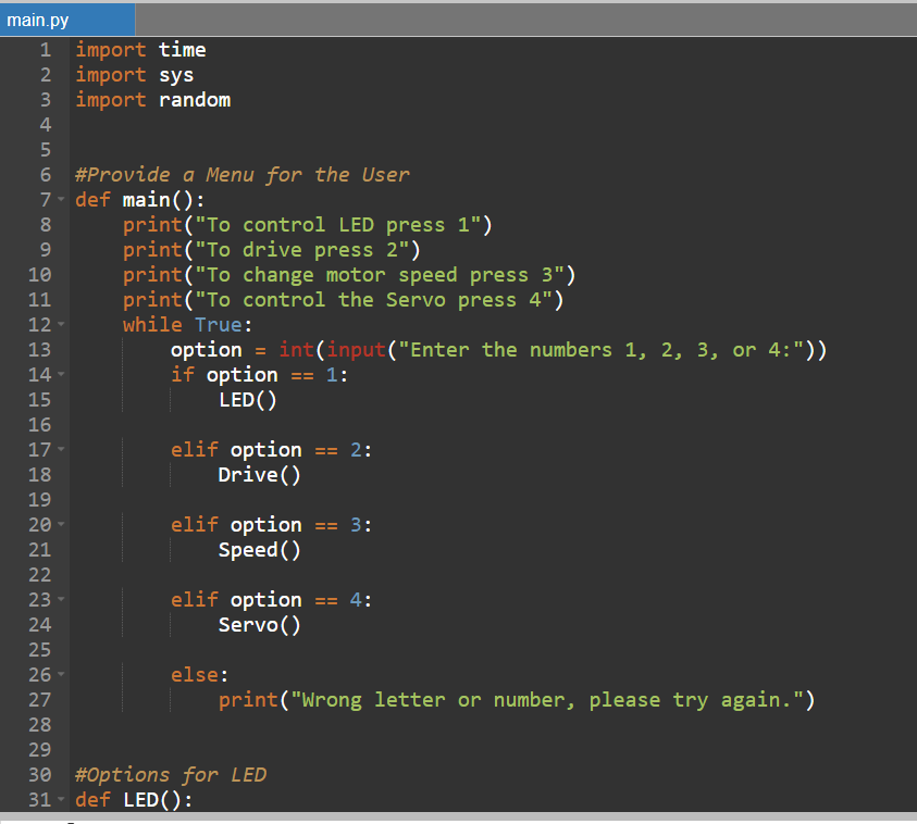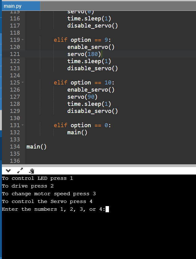 I am trying to make a robot move (theoretically), some of my code does not work in python. I am getting some errors. How can I fix it?