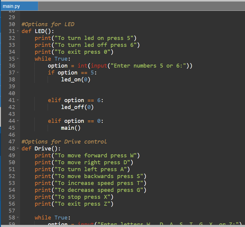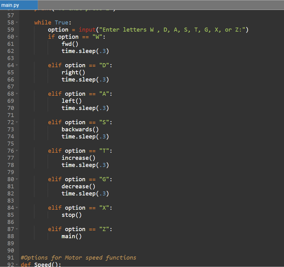 option = input("Enter letters W , D, A, S, T, G, X, or Z:")