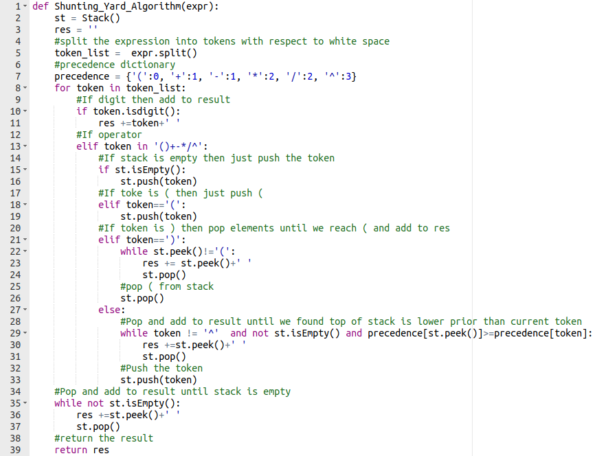 precedence[st.peek()]>=precedence[token]:
