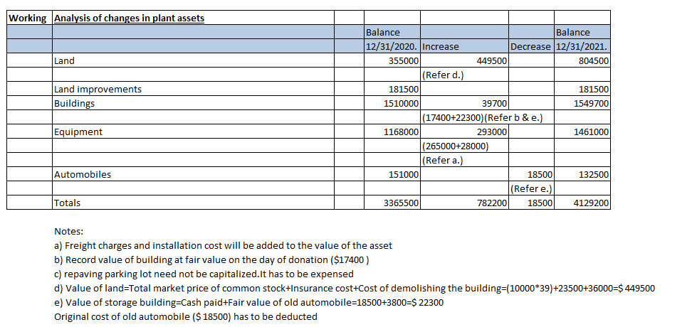 For each asset classification, prepare a schedule showing