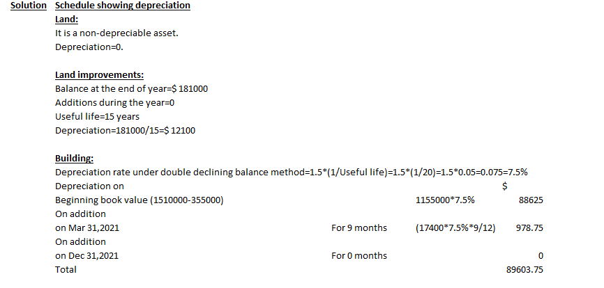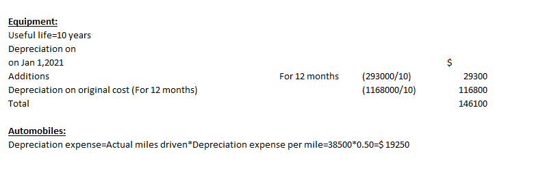 depreciation for the year ended December 31, 2021, using the