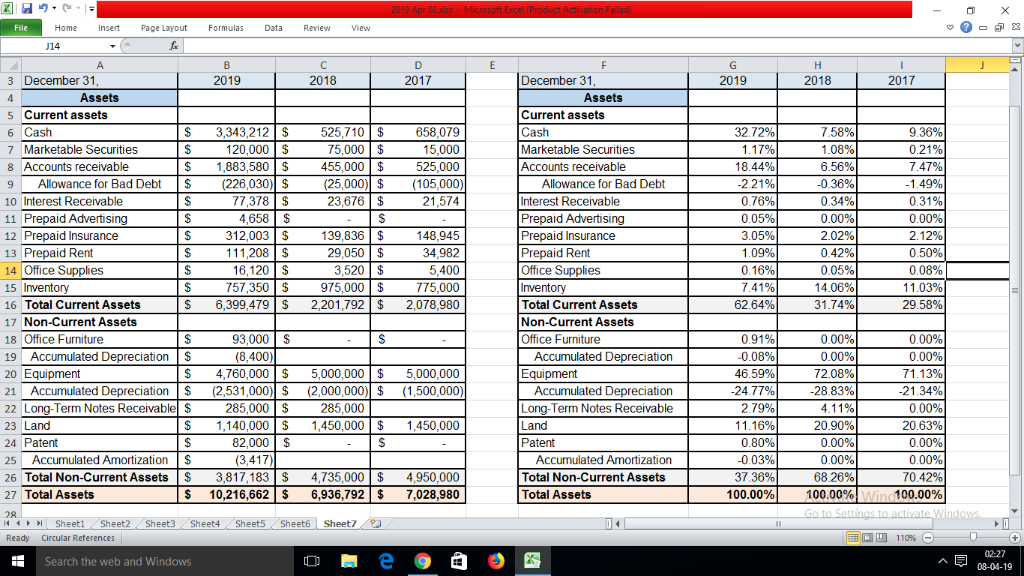 Will you show me a vertical analysis of the assets portion of this balance sheet?