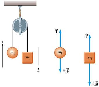 Suppose that in the same Atwood setup another string is attached to the bottom of m1 and a constant force f is applied, retarding the upward motion of m1. If m1 = 5.70 kg and m2 = 11.40 kg, what value of f will reduce the acceleration of the system by 50%?