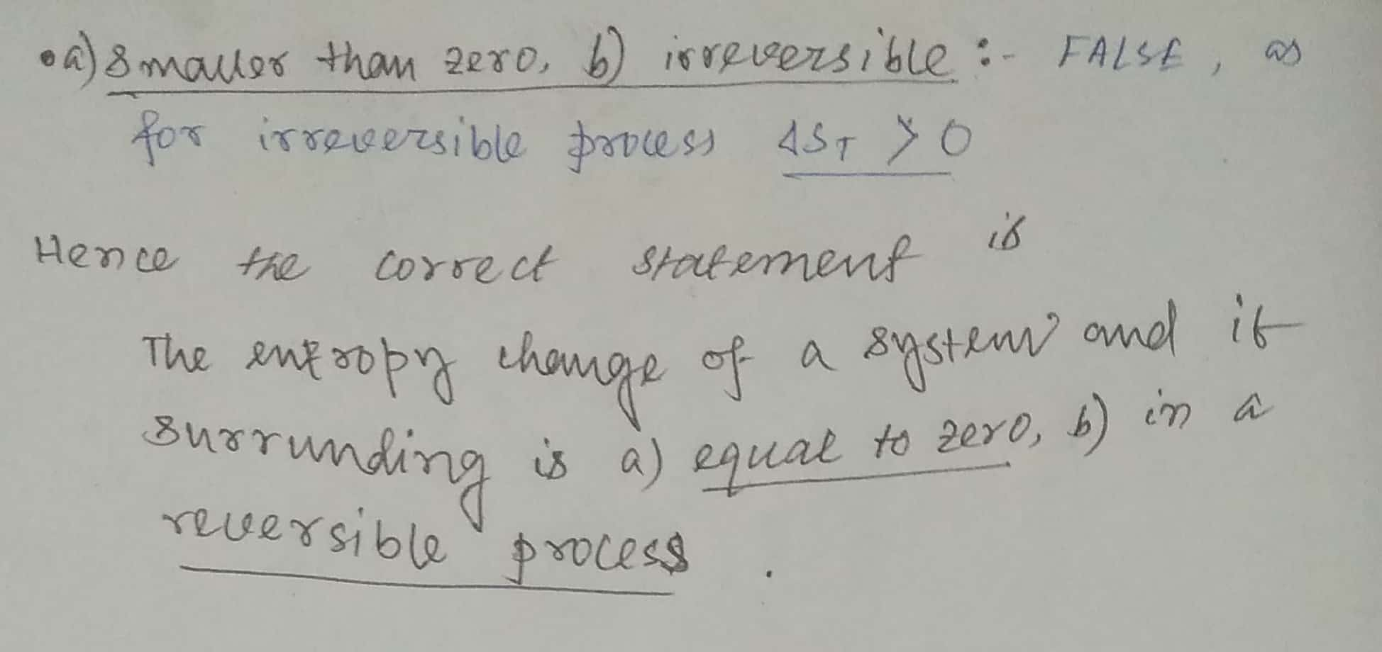 - (a) smaller than zero; (b) irreversible