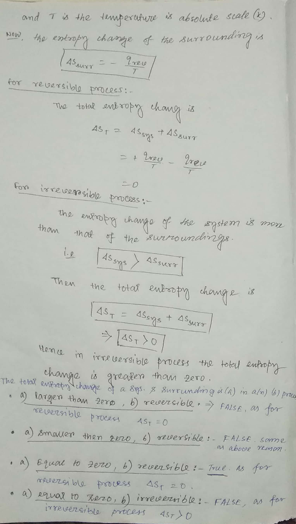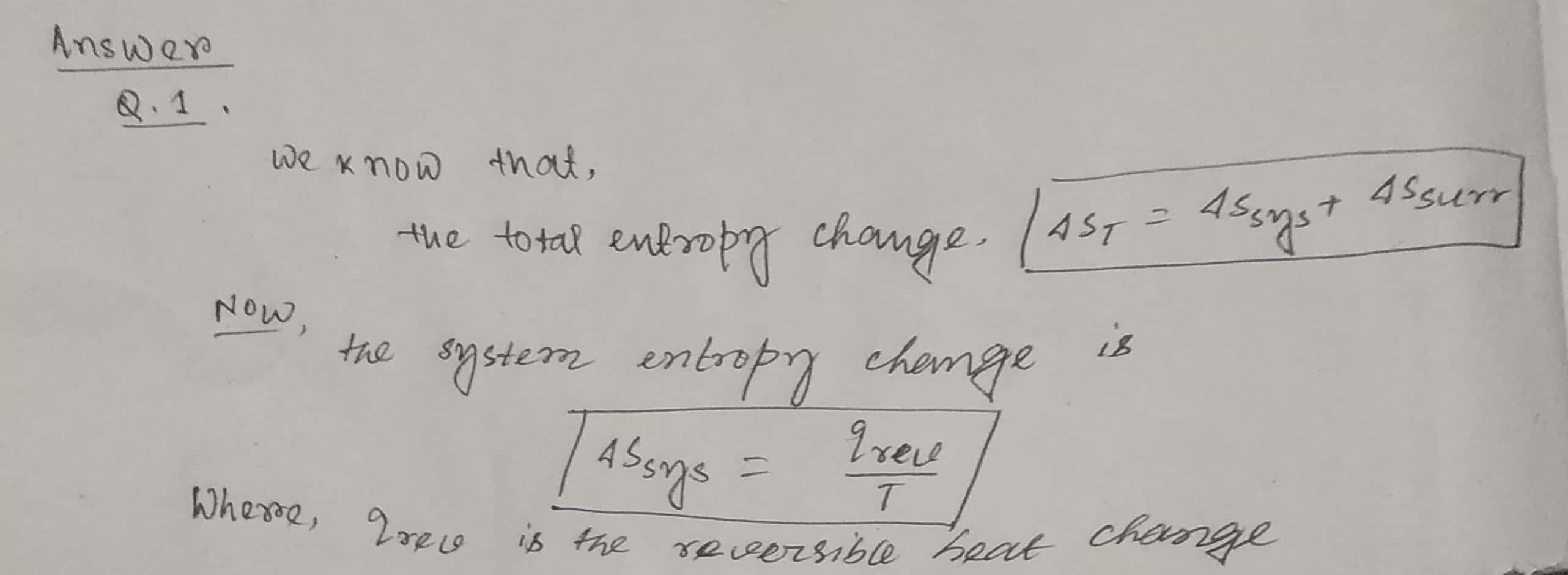 Q1, The total entropy change of a system and its surrounding is