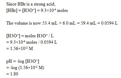 F. pH after adding 6.0 mL of acid beyond the equivalence point