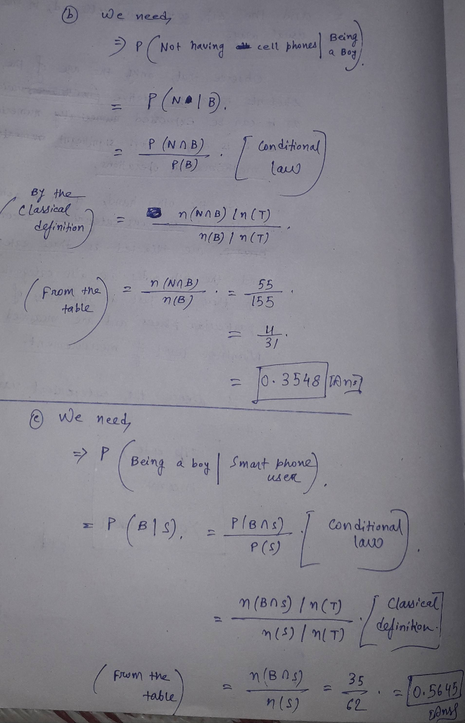 c) What proportion of smart phone users are boys?