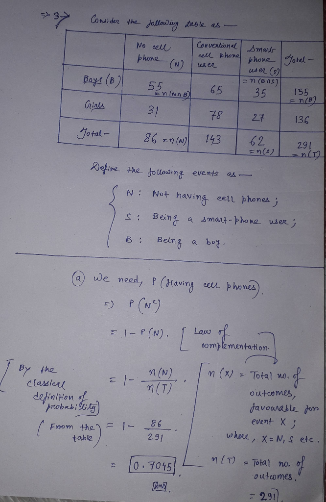 3-The following data were collected in a survey of 8th graders and summarize their cell phone status.