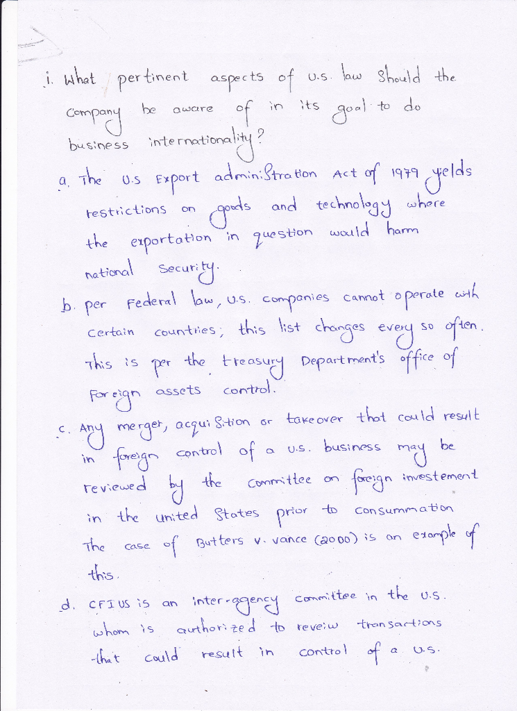 I. What pertinent aspects of U.S. law should the company be aware of in its goal to do business internationally?