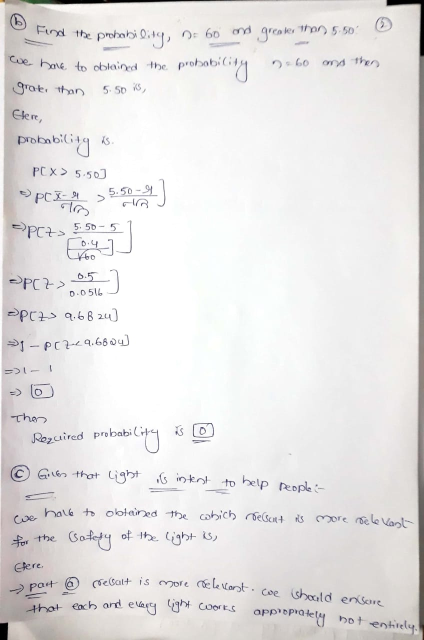 b. Find the probability that the mean for 60 randomly selected times is greater than 5.50s