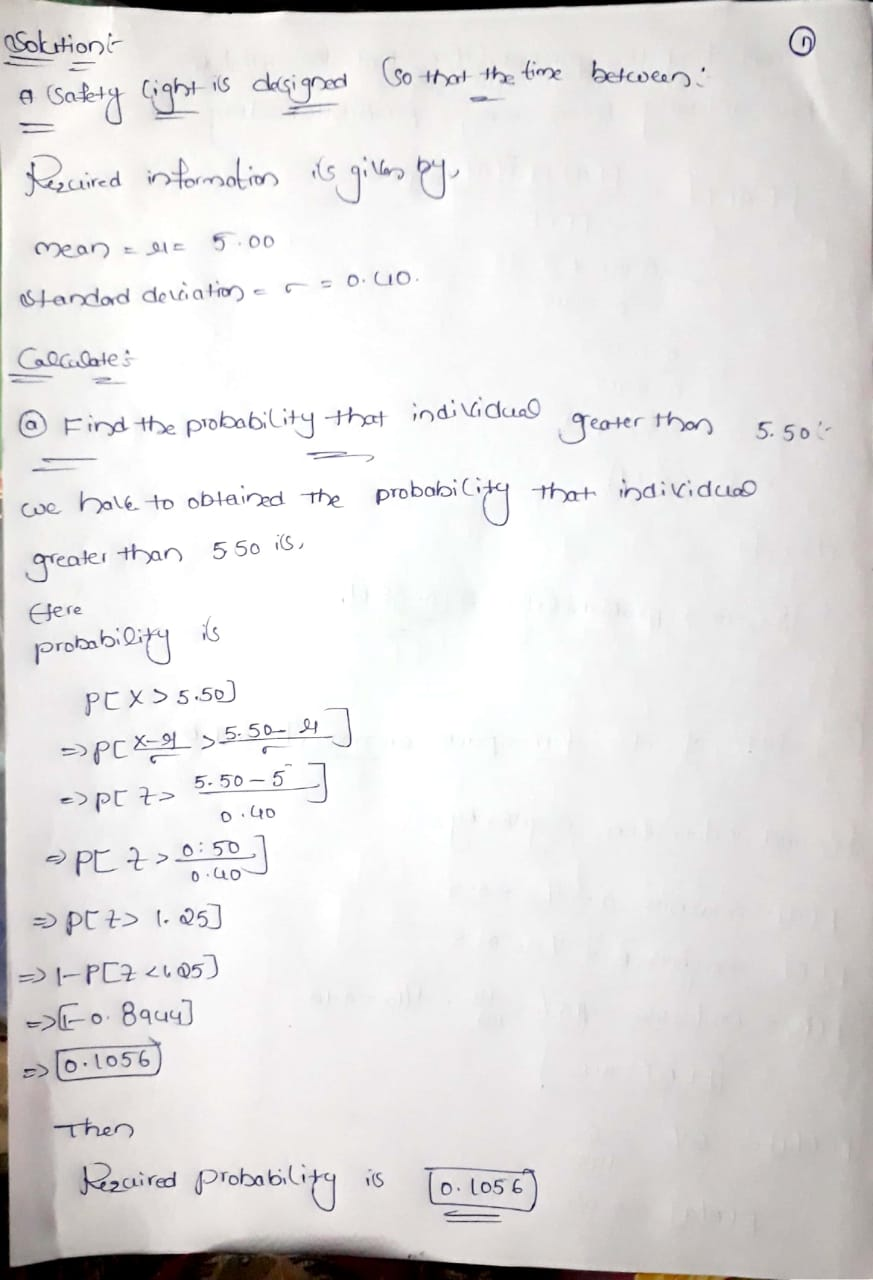 A safety light is designed so that the times between flashes are normally distributed with a mean of 5.00s and a standard deviation of 0.40s