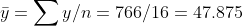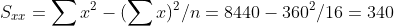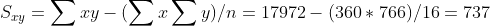 Slope of the regression line = Sxy / Sxx = 737 / 340 = 2.167647