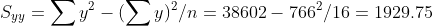 R2 = S2xy / (Sxx * Syy) = 7372 / (340 * 1929.75) = 0.8278564 = 82.79%