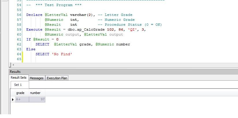 SELECT @Numeric = Numeric_Grade from [Student].dbo.Grade