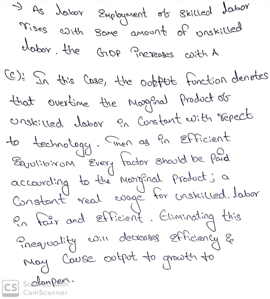 (C) As the American economy has been growing, income inequality has been rising too. In the context of this problem, is inequality in incomes of skilled an unskilled workers a “fair” outcome? If you were a policymaker, would you want to eliminate this kind of inequality?