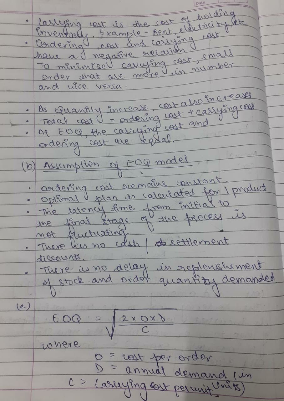 EOQ, No. of order per year, Ordering Cost and Carrying Cost and