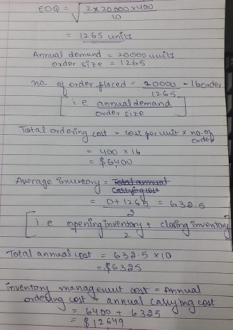 Tsh 400 and its carrying cost per unit is Tshs 10 per unit per