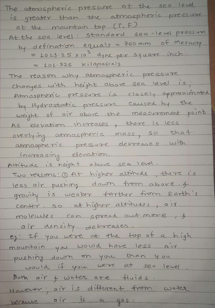 1a) If the atmospheric condition at sea level is 101.3 kPa and