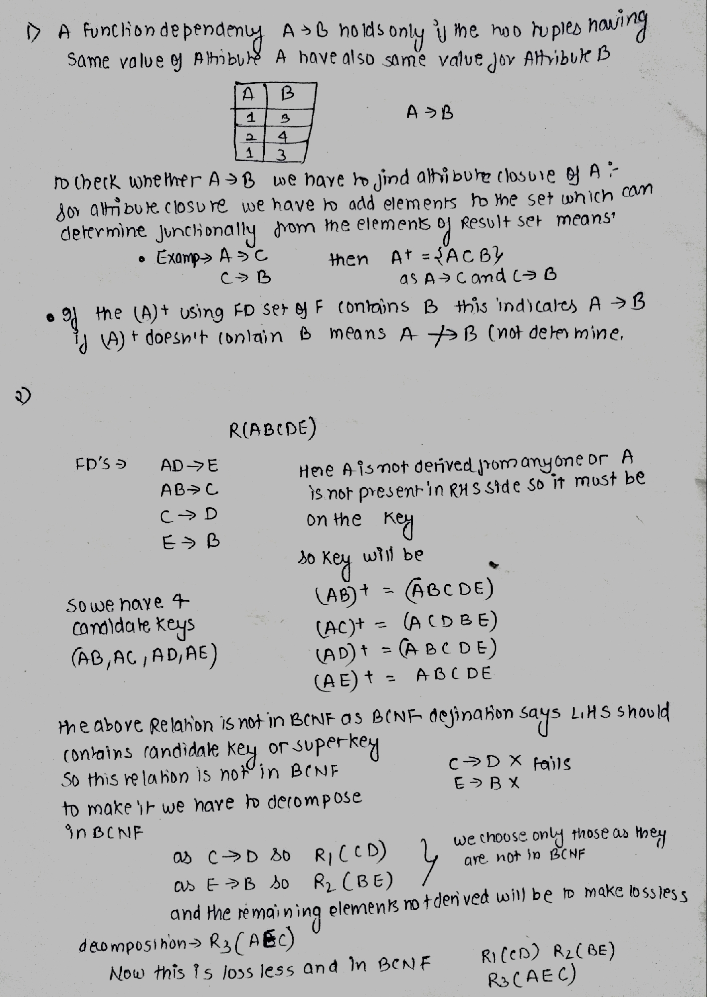 Ques: (i) Given an instance of a relation R where A and B are two of the attributes in R, describe an algorithm that checks whether a functional dependency A → B holds on R.