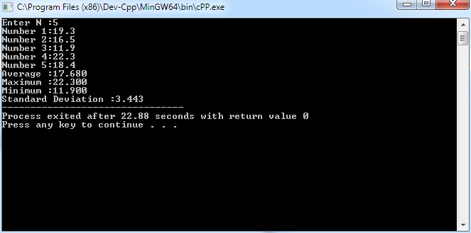 printf("\nStandard Deviation :%.3lf",std_dev);