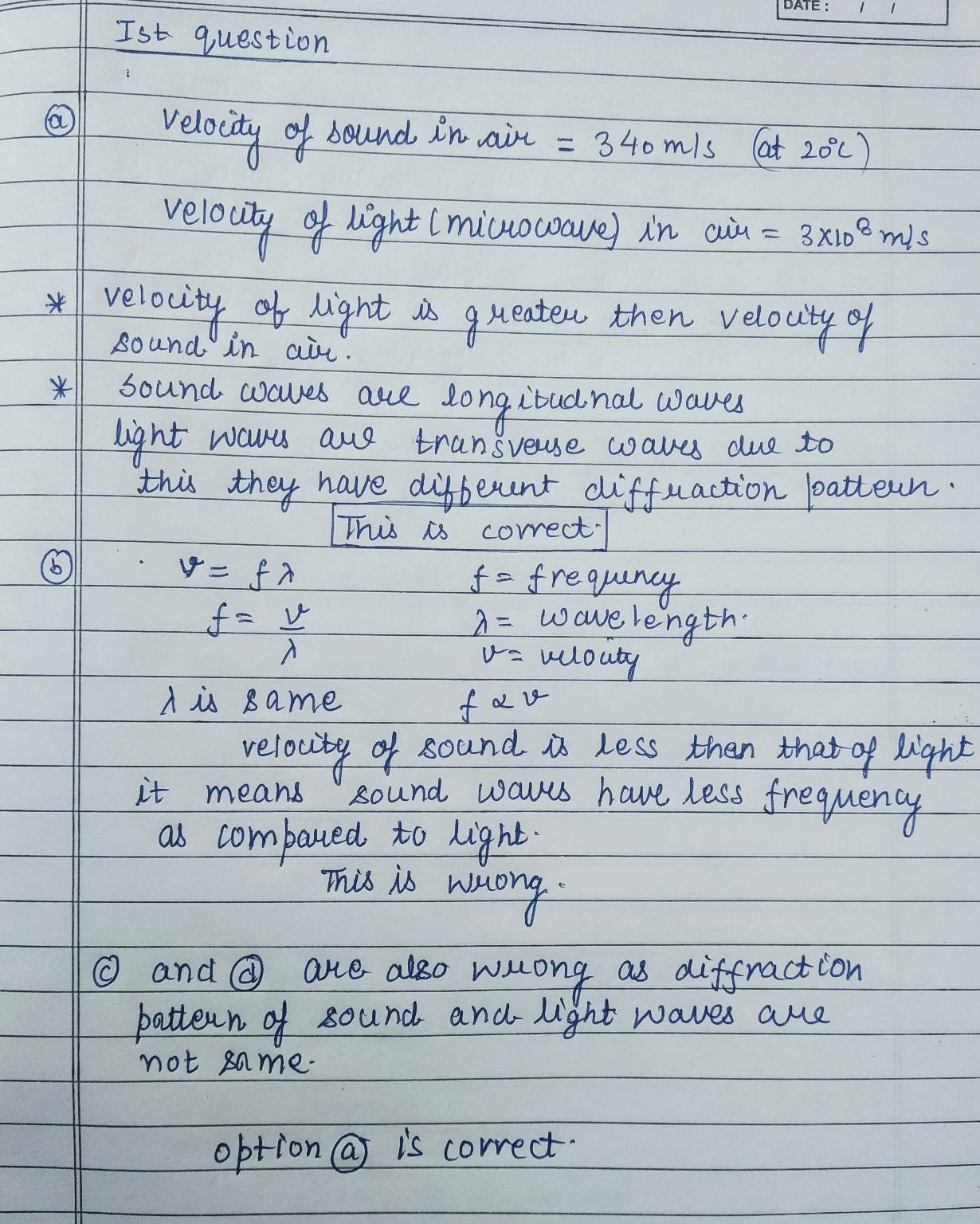 (a) The diffraction pattern from microwaves and sounds waves is different because the waves have