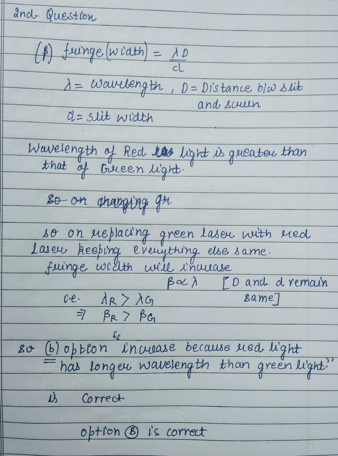 a distant screen. If the green laser is replaced with a red laser, with everything else the same, the