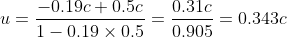 Speed of B relative to A = u' = - 0.19c (opposite direction of motion)