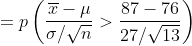 (b) What is the probability that a random sample of 13 time intervals between eruptions has a mean longer than 87 minutes?