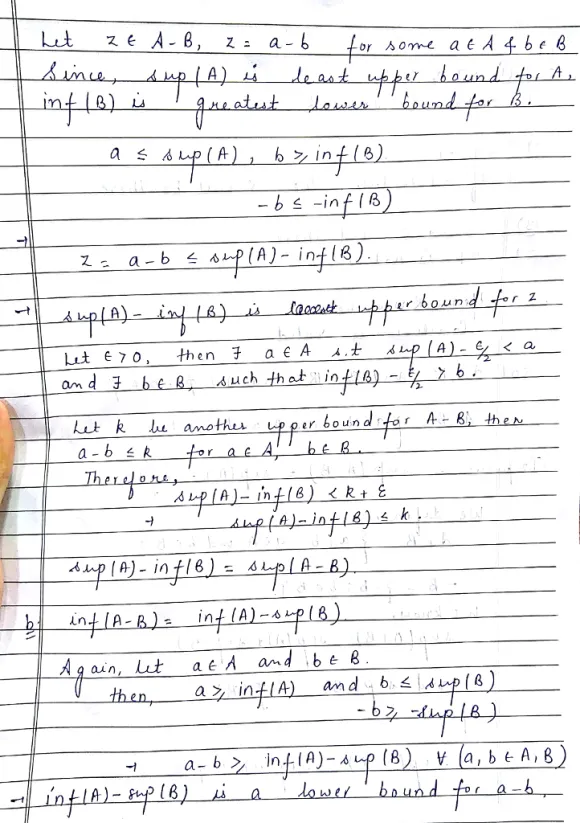 Define a set A − B := {a − b : a ∈ A and b ∈ B}. Show that sup(A −