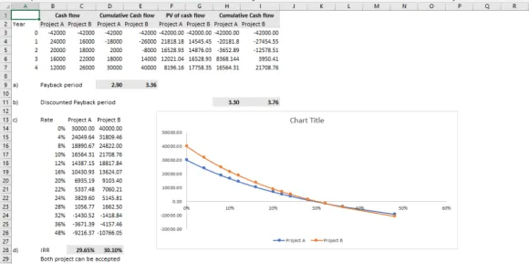 b. Calculate each project’s discounted payback (DPB) period if r = 10% (up to 2 decimal places). Which project should be accepted?